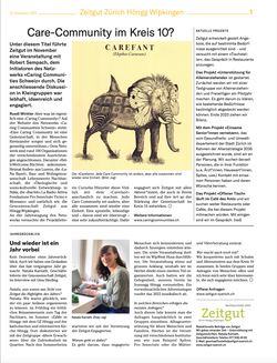 Aber was ist eigentlich eine «Caring Community»? Auf der Website des Netzwerks «Caring Communities Schweiz» steht: «Eine Caring Community ist eine Gemeinschaft, in der Menschen füreinander sorgen und sich gegenseitig unterstützen.» Dem Netzwerk sind rund 100 Organisationen der verschiedensten Ausrichtungen angeschlossen. Darunter «HelloWelcome.flüchten. ankommen. Heimat finden» aus Luzern, die «LeNa Basel», Bau- und Wohngenossenschaft Lebenswerte Nachbarschaft, die «Ökologische und sozio-kulturelle Entwicklung» in Stäfa; die «BarAtto La Radio Attiva Fondazione Pro Senectute Ticino e Moesano» und natürlich wir, die Genossenschaft Zeitgut aus Höngg-Wipkingen.