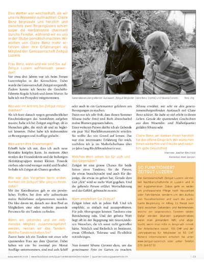 Von Claire Benz wollten wir mehr über ihre Erfahrungen als Mitglied von Zeitgut Luzern wissen. Ein Interview.