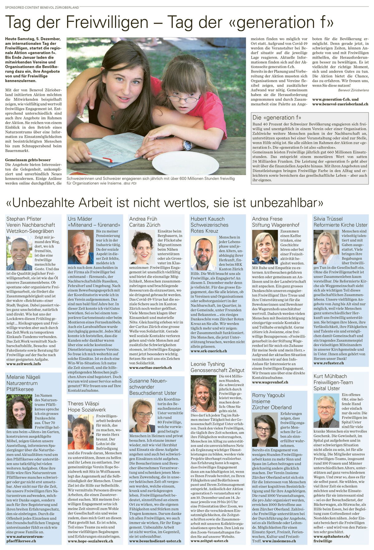 Am Samstag, 5. Dezember 2020, ist der internationale Tag der Freiwilligen. An diesem Tag startet die regionale Aktion «generation-f». Dagmar Anderes, Leiterin der Fachstelle benevol Zürioberland, erklärt, um was es dabei geht.